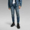 The G-Star Elwood Flightsuit 3D jeans is designed in a skinny fit. Knee pads and heel guards add reinforcement. Aside the inset pockets and coin pocket, this jean also offers a thigh pocket with a concealed zip. The entries of the back pockets are concealed and offer an additional zipper pocket, that runs vertically aside one of these.