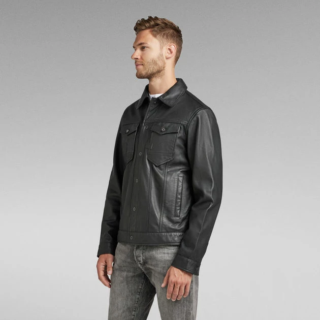 This leather version of the Arc 3D jacket follows the same G-Star 3D design principles as the original denim one. Offering flap pockets at the chest and vertical welt pockets at the waist. The fully lined inside shows an additional pocket. Snap buttons create a firm closure to this lined leather jacket.