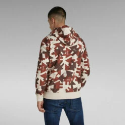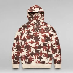 An allover printed design of arrows create a camouflage look. This Camo hoodie offers a ribbed neckline and roomy fit. The kangaroo pocket completes it.