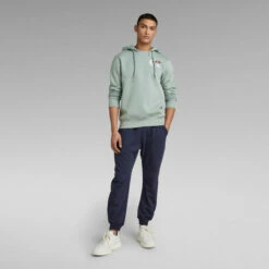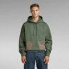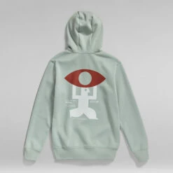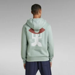 Hooded sweater Back Graphic combines a ribbed round neck and a roomy hood with drawcords. The sleeves and waist are finished with a comfortable rib. This straight fit sweater shows a graphic print at the chest as well as the waist.