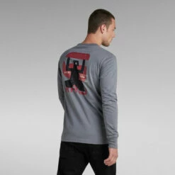 T-shirt Back Graphic is one of our organic cotton printed T-shirts. This long sleeve version features a graphic print at the chest and back. The rounded neckline created out of rib adds to a comfortable wear.