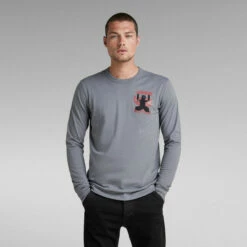 T-shirt Back Graphic is one of our organic cotton printed T-shirts. This long sleeve version features a graphic print at the chest and back. The rounded neckline created out of rib adds to a comfortable wear.