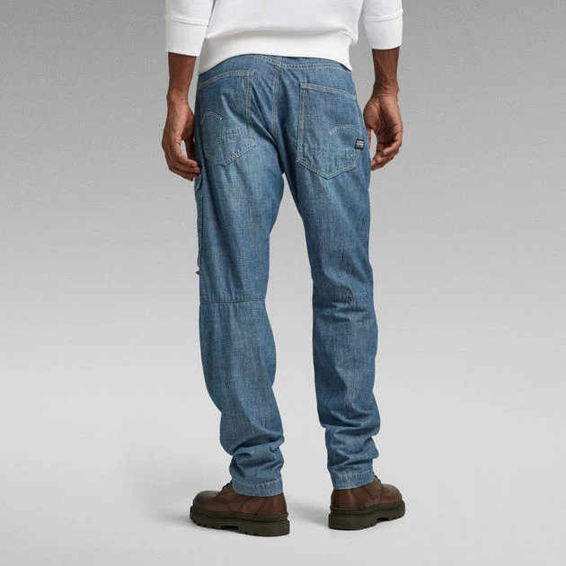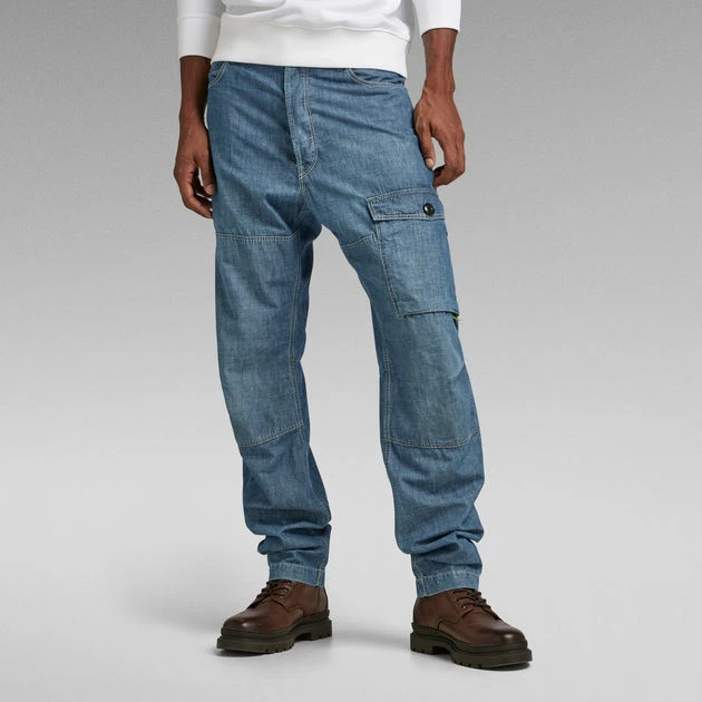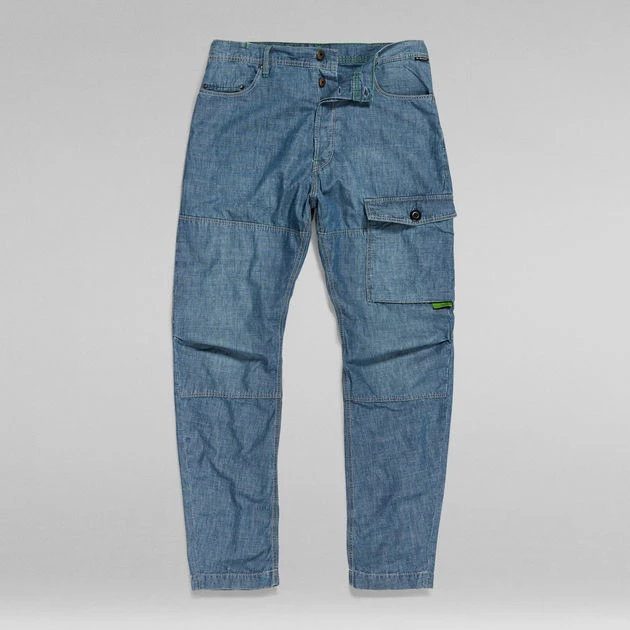 Cargo pants Bearing 3D offer a flap pocket at the front thigh. The pleats at the outer leg create a shaped leg. These pants show inset pockets with a concealed coin pocket and patch pockets at the backside. The leg width can be altered by pulling the tape inside. This style offers a button fly.