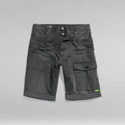 Cargo shorts Bearing shows a flap pocket at the front thigh. These longer shorts offer inset pockets with a concealed coin pocket and patch pockets at the backside.