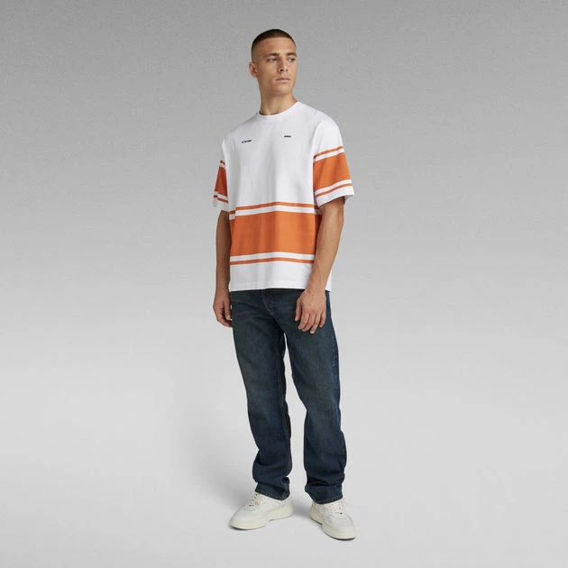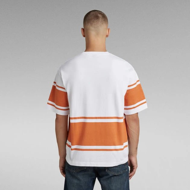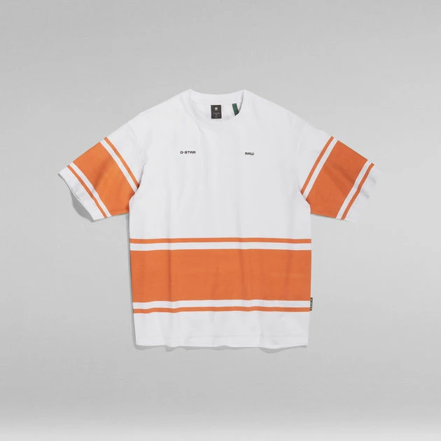 This Boxy striped T-shirt offers a comfortable wear due to the oversized fit and ribbed neckline. A squared, boxy silhouette is created in a striped design. G-Star RAW graphics added to the chest complete it.