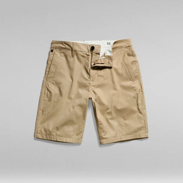 This half-length version of our signature G-Star Bronson chino offers the same features and fit. Wide welt pockets are set at the front and a coin pocket is caught in the sideseam. These straight fit shorts work well with one of our organic cotton RAW T-Shirts. Fold the leg hems to complete the look.