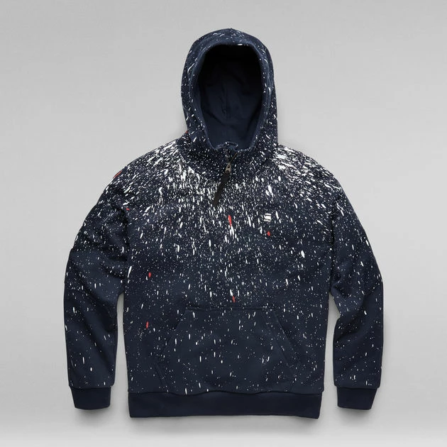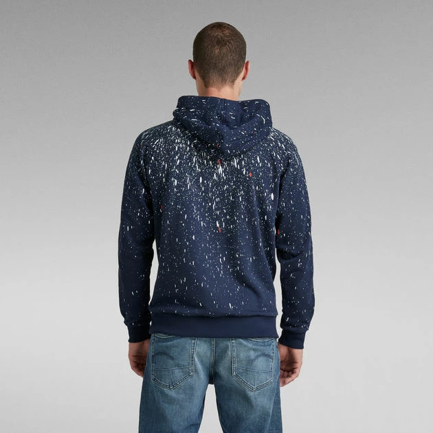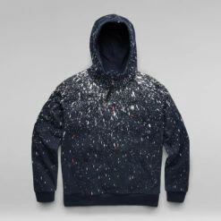 The Cadett Strett sweater is designed with a rubberized splatter print. The hood is extended at the front. By opening the front zipper, a wider neckline appears. This hoodie features a kangaroo pocket and raglan inset sleeves. Rib cuffs and waist create a comfortable finish.