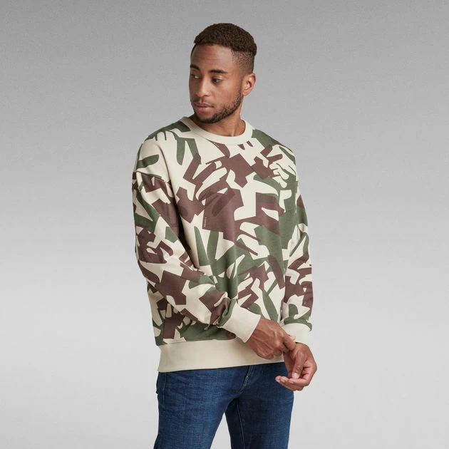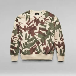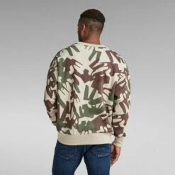 An allover printed design of peace hands create a camouflage look. This Camo sweater offers a ribbed neckline and roomy fit.