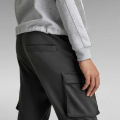 Sweatpants Cargo are created in a loose fit with elasticated finishes, where a drawcord is added to the waist. Inset pockets at the front are combined with a single welt pocket at the back. Aside those, these joggers also offer roomy thigh pockets with a semi closed flap. A ‘strike through’ embroidery indicates the entrance.