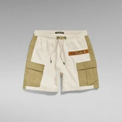 Sweat shorts Cargo offer roomy pockets at the front with a flap and Velcro closure. The elasticated waist is designed with an additional drawstring. These shorts show inset pockets and a single back pocket.