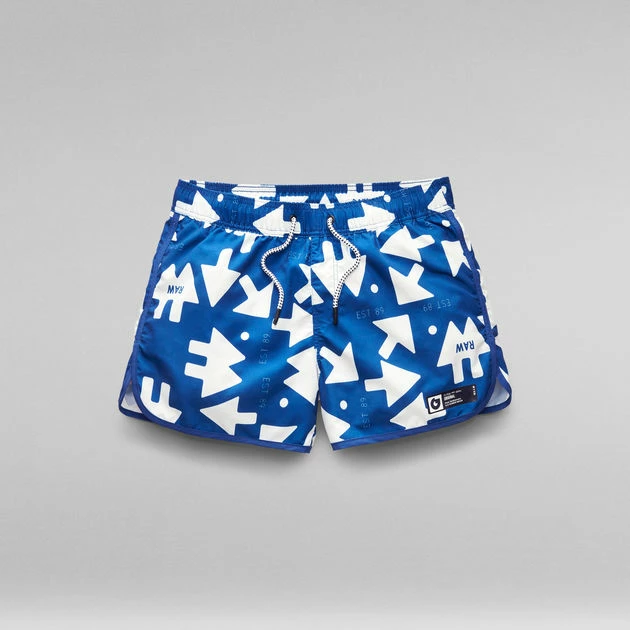 These Carnic RAW swim shorts show an allover graphic print. Offering an elastic waistband with an incorporated drawcord. The rounded hem gives small slits at the sides and is finished with a binding. A woven label is placed at the front leg, while the back shows a slim welt pocket. Inside, a mesh lining adds support.