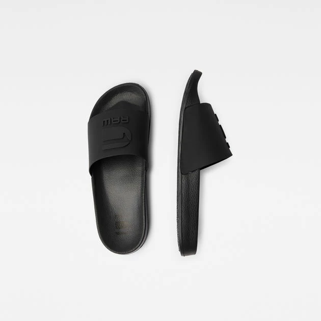 These lightweight Cart slides show a raised RAW design at the strap. The ergonomic footbed allows for a relaxed feel.