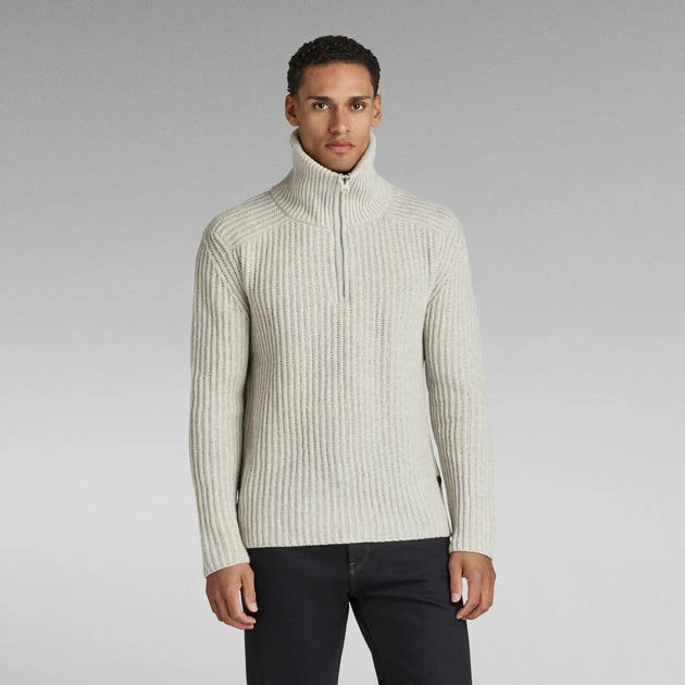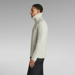 Knitted Sweater Chunky Skipper offers a high raised collar with a rough zipper. Fold it over for a voluminous effect or open the zipper to create a flat collar. Combine it with one of the G-Star RAW jeans to complete the look.