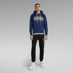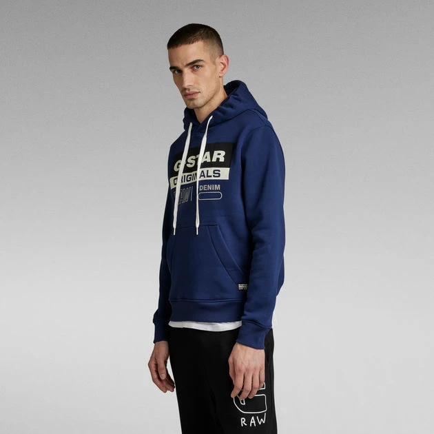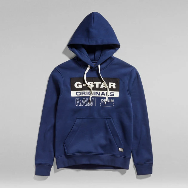 Hooded sweater Color Block is designed in a straight fit and offers a G-Star Originals print at the front. This graphic is set on a woven base and fixated with an outline stitch. A kangaroo pocket is set below. The lined hood with woven drawstrings completes it.