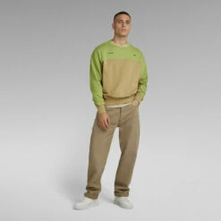 Sweater Colorblock is designed for those of you that love the transition to more oversized fits. The upper sleeves and shoulder panels are created in a contrast color. The rounded neck is finished with a ribbed edge, alike the cuffs and waist. Unisex sizing runs as men’s sizing.