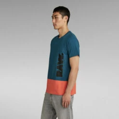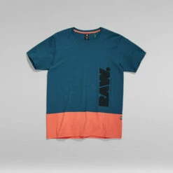 This organic cotton T-Shirt offers a straight fit. The bottom edge is created out of a contrast colored jersey. A RAW graphic added to the front completes it.