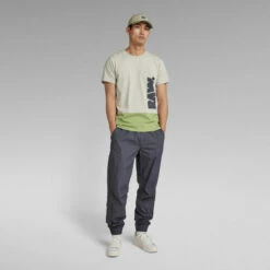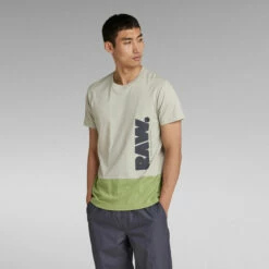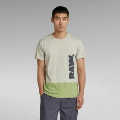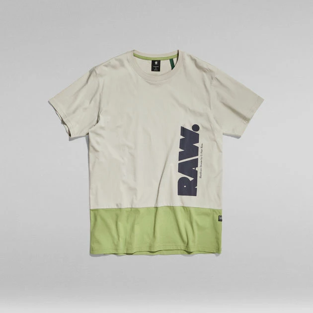 This organic cotton T-Shirt offers a straight fit. The bottom edge is created out of a contrast colored jersey. A RAW graphic added to the front completes it.