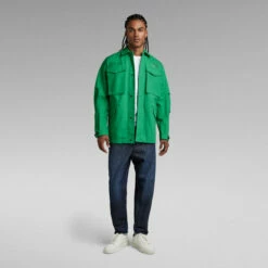 Jacket Core Field is an unlined in-between jacket. This unisex jacket offers flap pockets with a hidden snap button at the chest as well as the waist. Pull the tape inside to create more shape at the waist. The sleeves offer a shaped silhouette due to the pleats that are caught in the seam at the elbows. A hanger loop is added to the inside neck for ease. This Core field jacket offers a concealed snap button closure. Graphic prints at the chest sign it off.