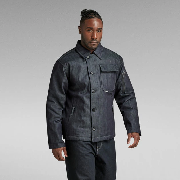 Denim jacket Deck is padded with a soft filling. The concealed zipper and inner cuffs keep out the wind and add to a comfortable wear. One of the sleeves is designed with a side entry zipper pocket. This jacket shows a single chest pocket with a flap combined with welt pockets at the waist that offer a hidden snap closure. For ease, an inner pocket is added to this padded denim jacket.