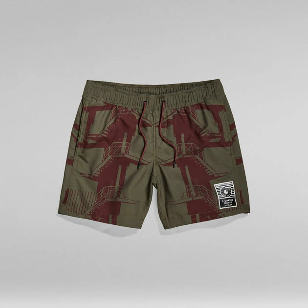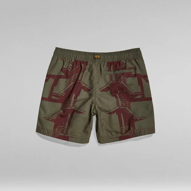 Swim shorts Dirik Building feature an allover graphic print. Side seam pockets are combined with a single welt pocket at the back. The waist offers elastic with an incorporated drawcord. Inside, a mesh lining adds support.