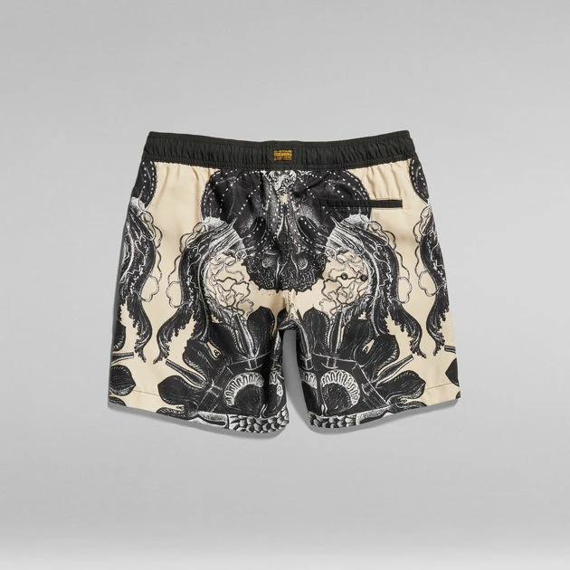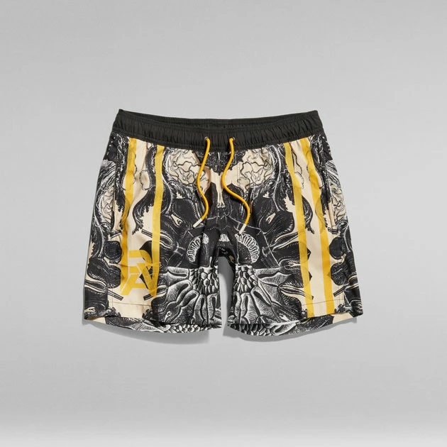Swim shorts Dirik Jellyfish feature an allover graphic printed design. These shorts offer an elastic waistband with an incorporated drawcord. Side seam pockets are combined with a slim welt pocket at the back side. Inside, a mesh lining adds support. The graphic G-Star RAW at the front completes it.