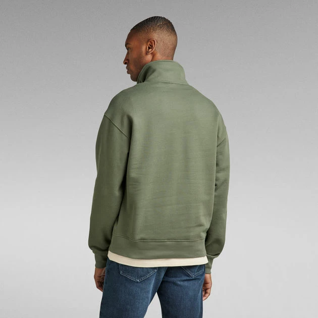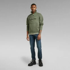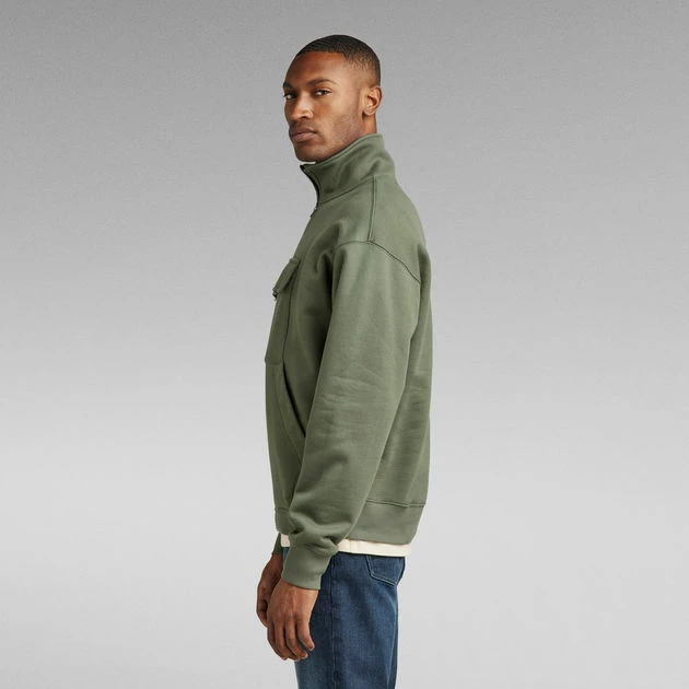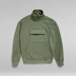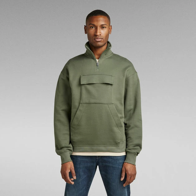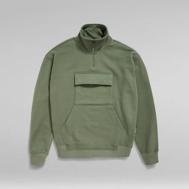 Skipper sweater Double Pocket is designed in a loose fit and features a roomy kangaroo pocket. A flap pocket with hidden snap closures is set just above. The raised collar offers a short zipper. The sleeves and waist are finished with a comfortable ribbed edge.