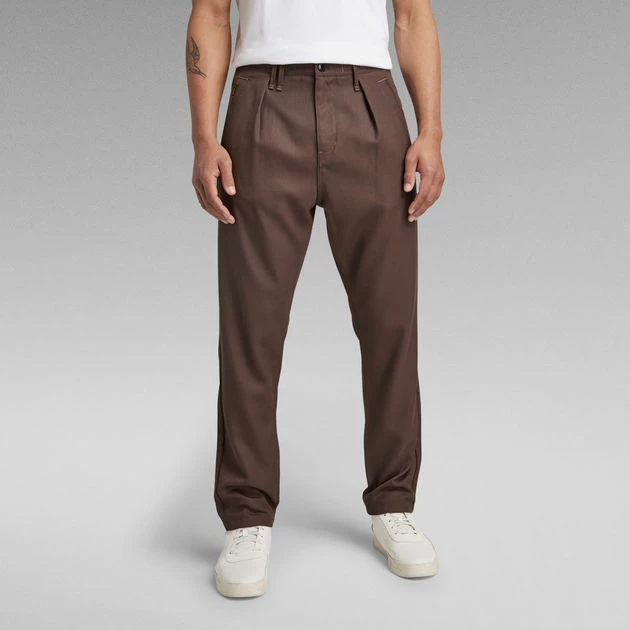 Chino Drawstring is designed in a roomy fit with a tapered leg. Pleats caught in the waistband add to it. These pants offer welt pockets at the front as well as the back. A ticket pocket is set just below. Create a slim fold over to complete the look.