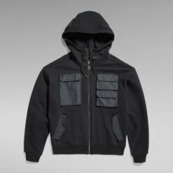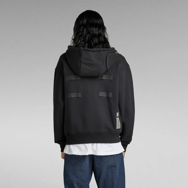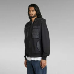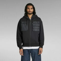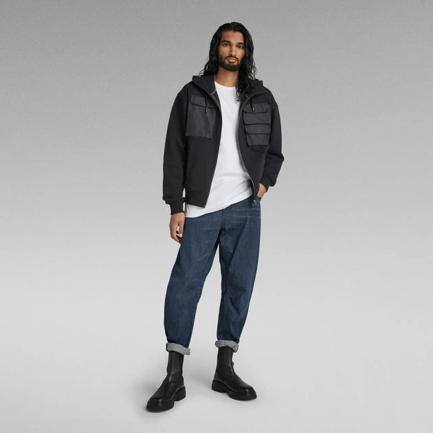 Zip Through Hoodie E Pocket is designed in a loose fit and offers a zipper pocket at the side of the hood. The hood has an integrated drawcord, which can be fixated by the woven tapes set at the front. This sweater jacket offers bellows pockets at the chest, where a strike through stitch indicates the Velcro closure underneath. A kangaroo pocket is designed with a double flap and is divided by a zipper closure. Woven tapes at the back add detail to this hooded jacket. It’s part of the Extremes collection, where timeless pieces are created by merging innovation with craftsmanship.
