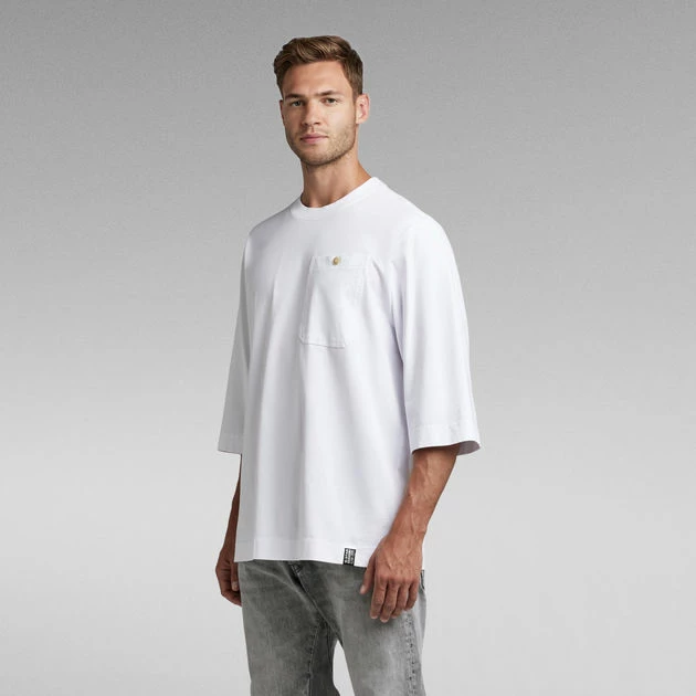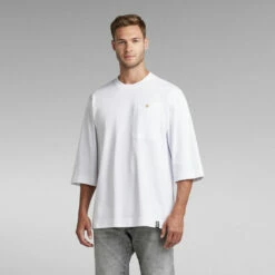 T-shirt Essential Loose is cut in a roomy fit and offers a single chest pocket with a button closure. The top edge is cut slanted. The short sleeves of this tee are kept longer to reach below the elbow.