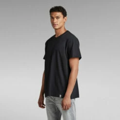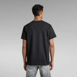 This organic cotton short sleeved T-shirt offers a comfortable wear due to the loose fit and ribbed neckline. The G-Star RAW woven label set at the lower front signs it off.