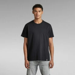 This organic cotton short sleeved T-shirt offers a comfortable wear due to the loose fit and ribbed neckline. The G-Star RAW woven label set at the lower front signs it off.