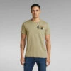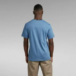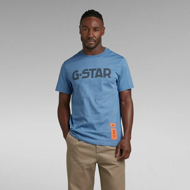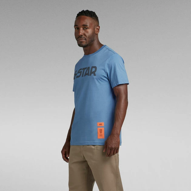 This organic cotton T-shirt features a patched on G-Star graphic at the chest, created out of fabric. Printed woven labels are placed at the lower front. This short sleeved T-Shirt is designed in a straight fit and offers a ribbed neckline for a comfortable wear.