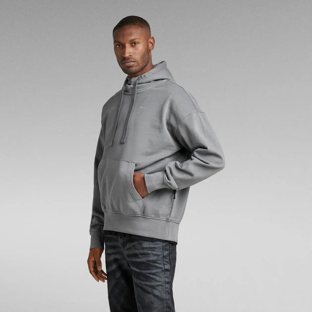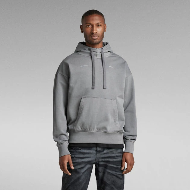 Hooded sweater Garment Dyed offers a relaxed, oversized fit. Featuring a roomy kangaroo pocket and a hood with a raised front. The added tape allows for a tighter fit when preferred. This hoodie has long sleeves with a ribbed cuff. The chest signs it with a subtle G-Star RAW print.