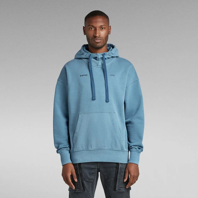 Hooded sweater Garment Dyed offers a relaxed, oversized fit. Featuring a roomy kangaroo pocket and a hood with a raised front. The added tape allows for a tighter fit when preferred. This hoodie has long sleeves with a ribbed cuff. The chest signs it with a subtle G-Star RAW print.