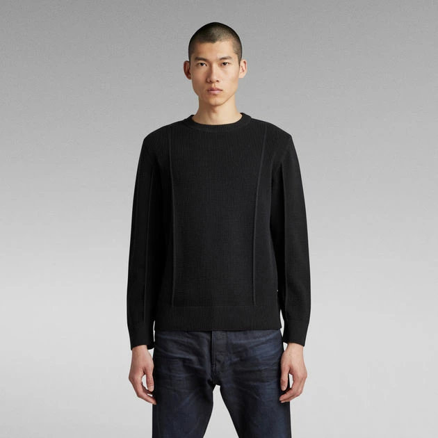 Knitted sweater Structure offers a straight fit. Different textures are combined in this design. The round neckline, cuffs and waist are finished with a ribbed edge. The G-Star RAW label at the lower side completes it.
