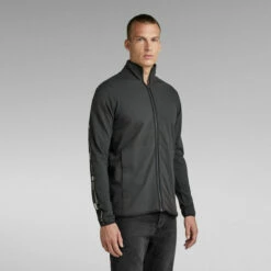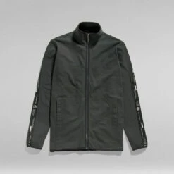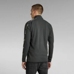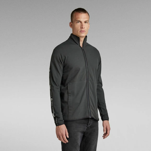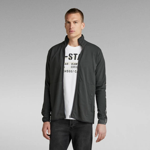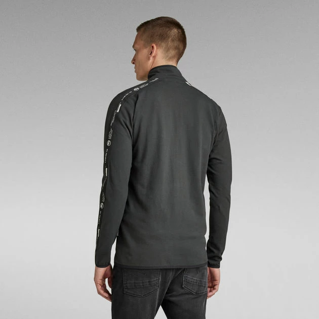 Lightweight Logo Tape Zip Through Sweater is designed in a straight fit and offers a zipper closure with a bound edge. A lighter weight sweater jacket that offers the comfortable wear of a jersey top. The neckline and sleeves are finished with an elasticated binding. A woven tape wraps around the back shoulder and proceeds along the sleeve, offering a G-Star RAW graphic.