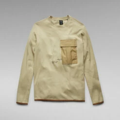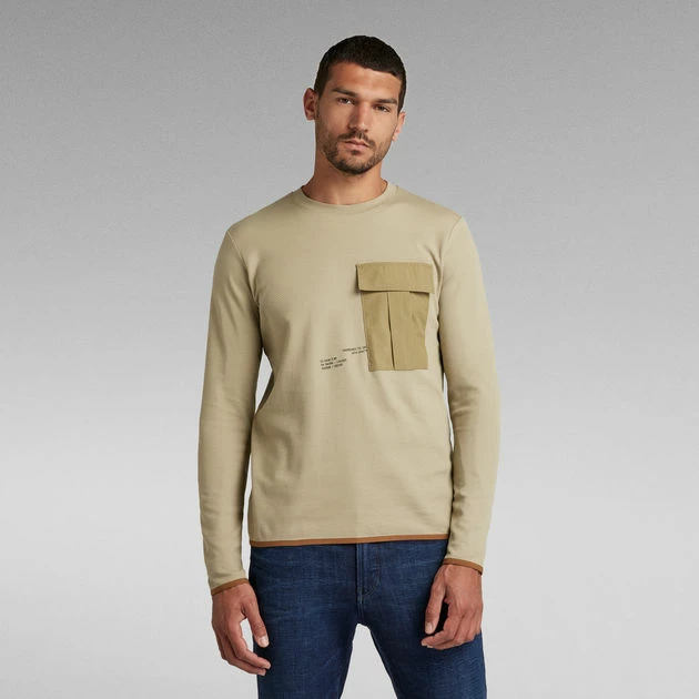 Tweeter Slanted Pocket is designed in a straight fit and offers a round neck with a ribbed finish. The sleeves and bottom edge are finished with a stretchy binding. This lighter weight sweater offers a cargo chest pocket with a Velcro closure. Graphic prints are added to the front and upper back. This lighter weight sweater offers the comfortable wear of a jersey top.