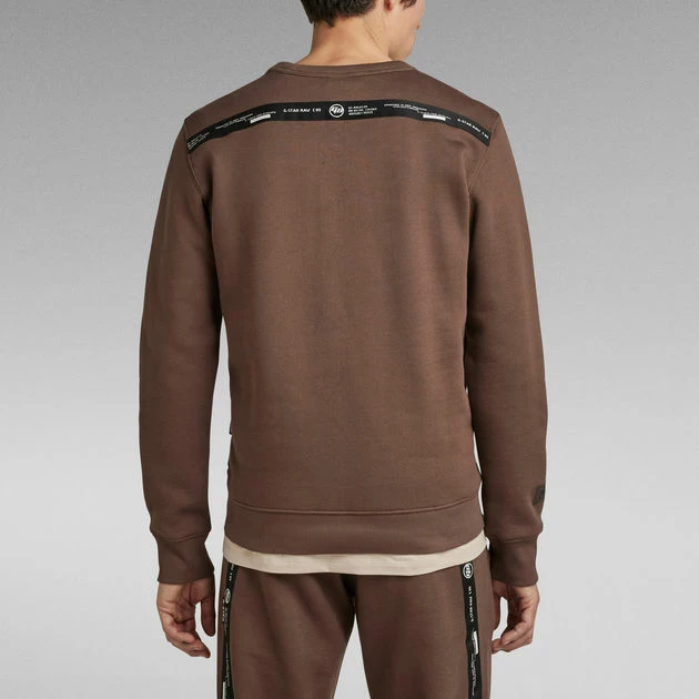 Crewneck Logo Tape features a straight fit with a round neckline. The sleeves and waist offer a ribbed edge for a comfortable finish. The woven G-Star RAW graphic tape across the back shoulder completes it.