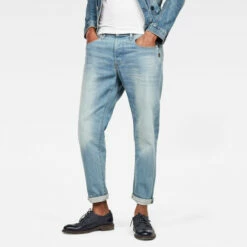 This style is crafted from Cradle to Cradle Certified® Gold G-Star Stretch Denim Fabric, a World’s 1st. The Loic Jeans is inspired by a north american work pants from the mid-century. Oversized, squared pockets are set at the back side. Just below the waistband a cinch at the back allows for adjustability of this relaxed tapered fit. Shaped seams at the lower leg add to the tapered look. The coin pocket is offers a button closure.This jeans can also be worn cropped