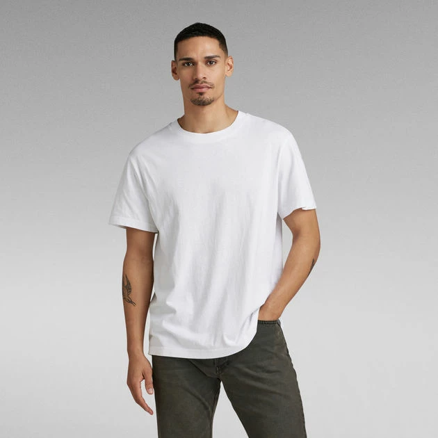 This organic cotton T-shirt offers a comfortable design due to the loose fit and ribbed neckline. The G-Star RAW woven label set at the side seam signs it off.
