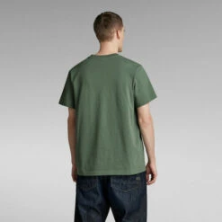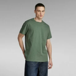 This organic cotton short sleeved T-shirt offers a comfortable wear due to the loose fit and ribbed neckline. The G-Star RAW woven label set at the side seam signs it off.
