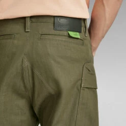 The design of cargo pants Mega Pocket pants show deep 3D front pockets with a zipper closure and an extended pull cord. Offering a relaxed tapered fit, where the tabs at the ankles allow for an even tighter fit. The rivets at the front pocket entrance reveal a hidden coin pocket at the inside waist. These cargo pants offer an additional flap pocket, set underneath one of the thigh pockets and back pocket with a single welt. The graphic print at the back pocket signs it off.
