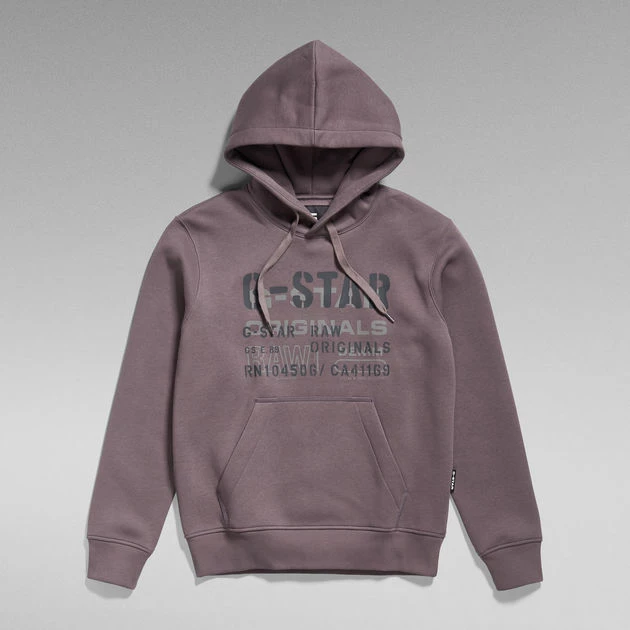 Hooded sweater Multi Layer Originals shows a crossover front with drawstrings. This straight fitted style features a kangaroo pocket. The double layer graphic print at the chest makes it complete.