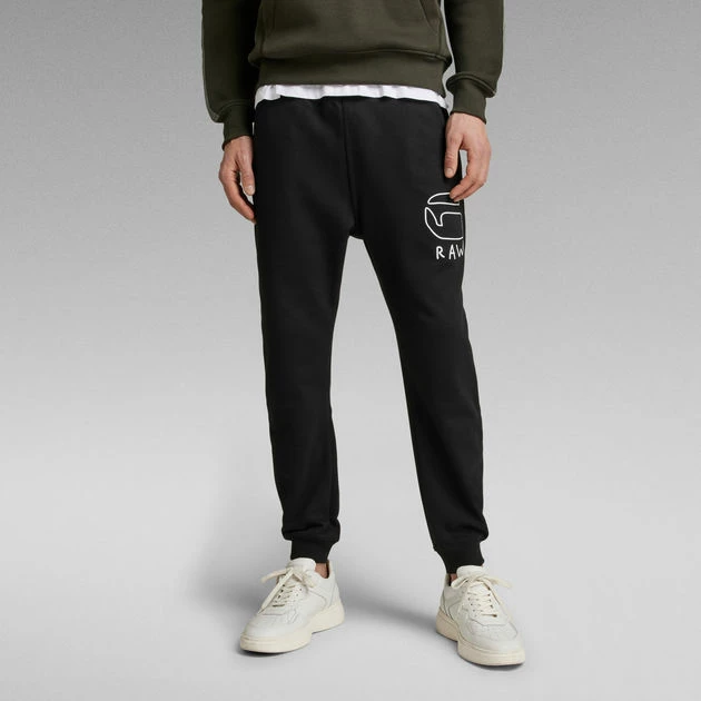 Sweatpants Outline offer a slim fit with a shaped design line at the ankle. A ribbed cuff is set underneath. These joggers offer an elasticated waist finished with an additional drawstring. Inset pockets are combined with a single back pocket. A graphic print is added to the upper leg.