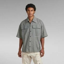 Oversized shirt 2-Pocket offers a relaxed fit in a boxy design. Flap pockets are set at the chest. The loop and volume pleats at the upper back add detail.