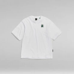 This organic cotton short sleeved T-shirt offers a comfortable design due to the oversized fit and ribbed neckline. A squared, boxy silhouette is created. A G-Star RAW graphic at the chest completes this oversized T-shirt.