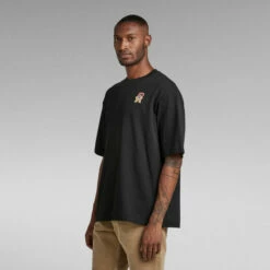 This organic cotton short sleeved T-shirt offers a comfortable design due to the oversized fit and ribbed neckline. A squared, boxy silhouette is created. A G-Star RAW graphic at the chest completes this oversized T-shirt.
