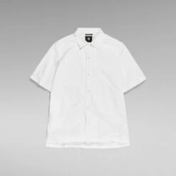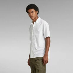 Short sleeved shirt Utility Panel is designed in a straight fit. At the chest deep front pockets are set. These are accessible from the side and offer a hidden snap button closure. This utility shirt has a loop collar and a button front closure.