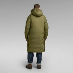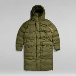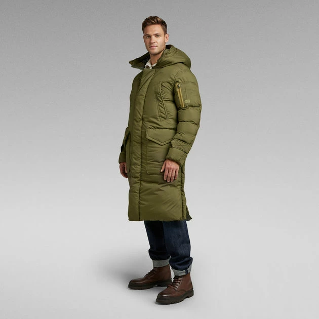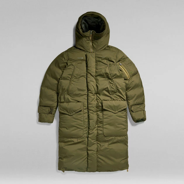 Hooded parka Pillow Whistler XL is cut from a water repellent fabric, offering a comfortable hood with a raised front and an adjustable peak. The 2-way front zipper closure is covered by a panel with snaps to block out the wind. Zippers are added to the sides to create a slit for ease of movement. This long padded coat offers pockets at the chest and waist as well as inside. At the bicep, an additional zipper pocket is added with compartments for a pen. The sleeves can be tightened around the wrist for optimum protection.