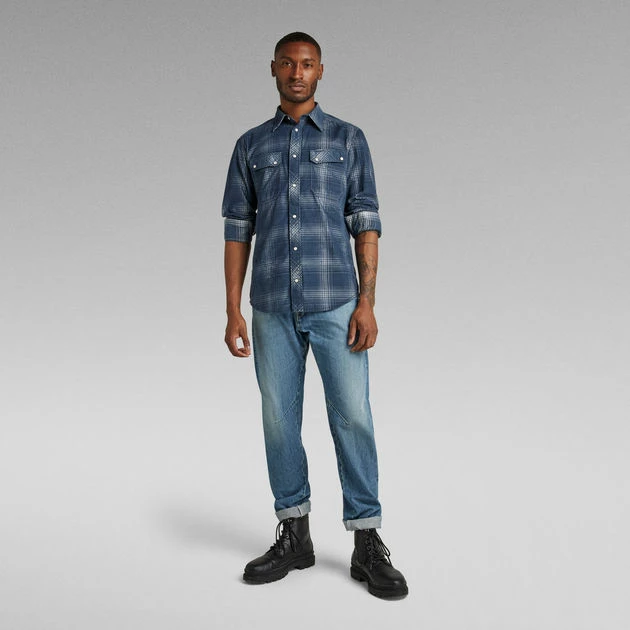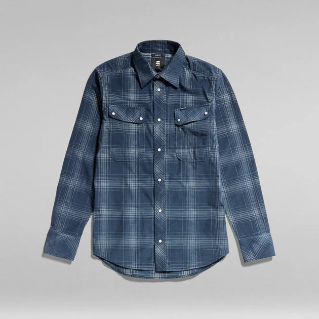 This shirt is designed in a slim fit, enhanced by the shaped seams at the back. G-Star RAW shirt offers chest pockets with an angled flap. Pearlescent snap buttons are picked to close this checkered shirt.